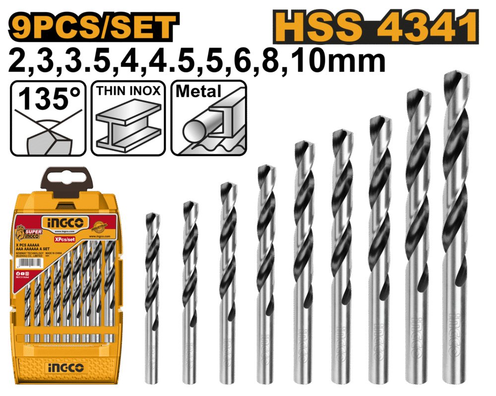 9 Pcs HSS Twist Drill Bits Set