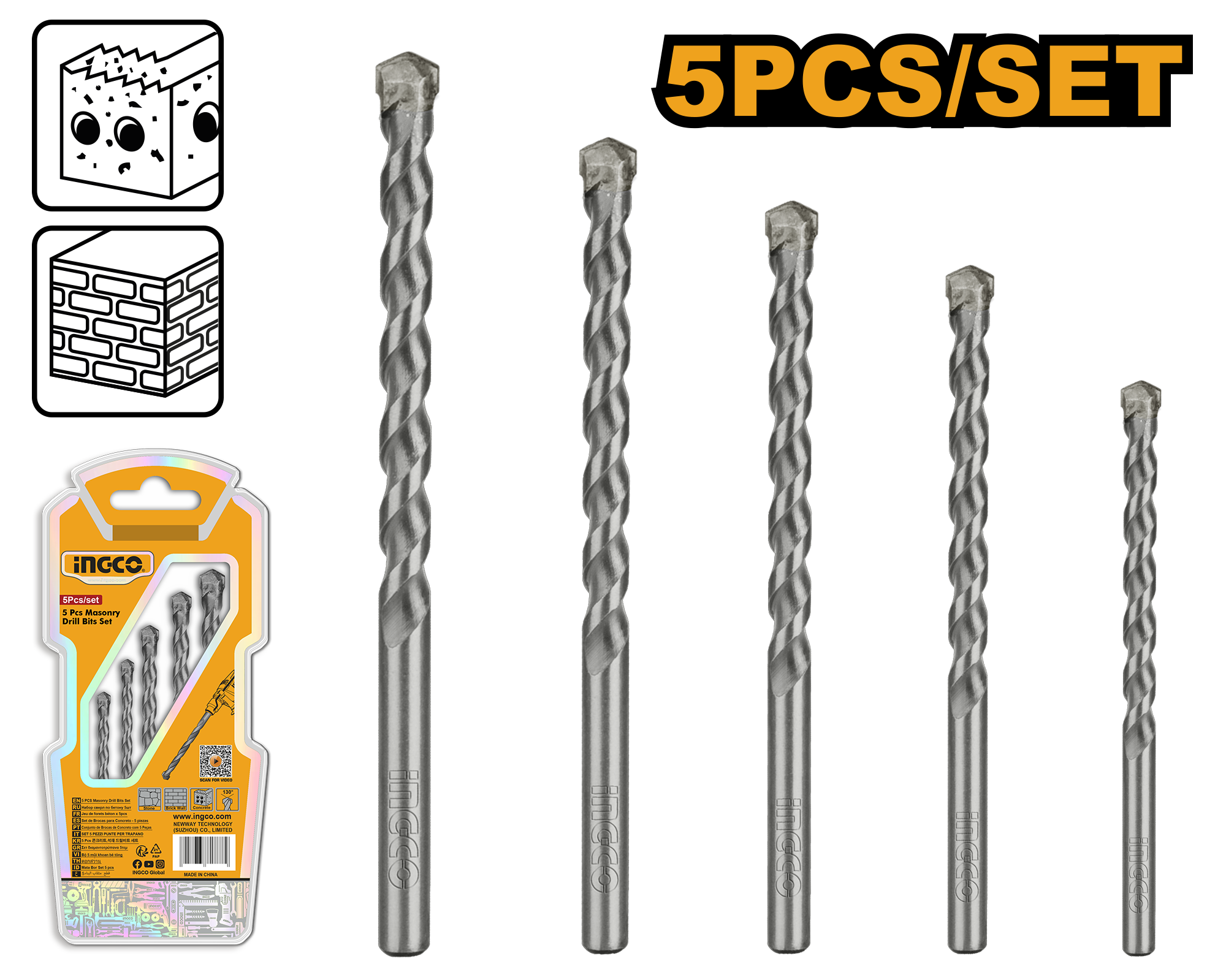 5PCS Masonry drill bits set