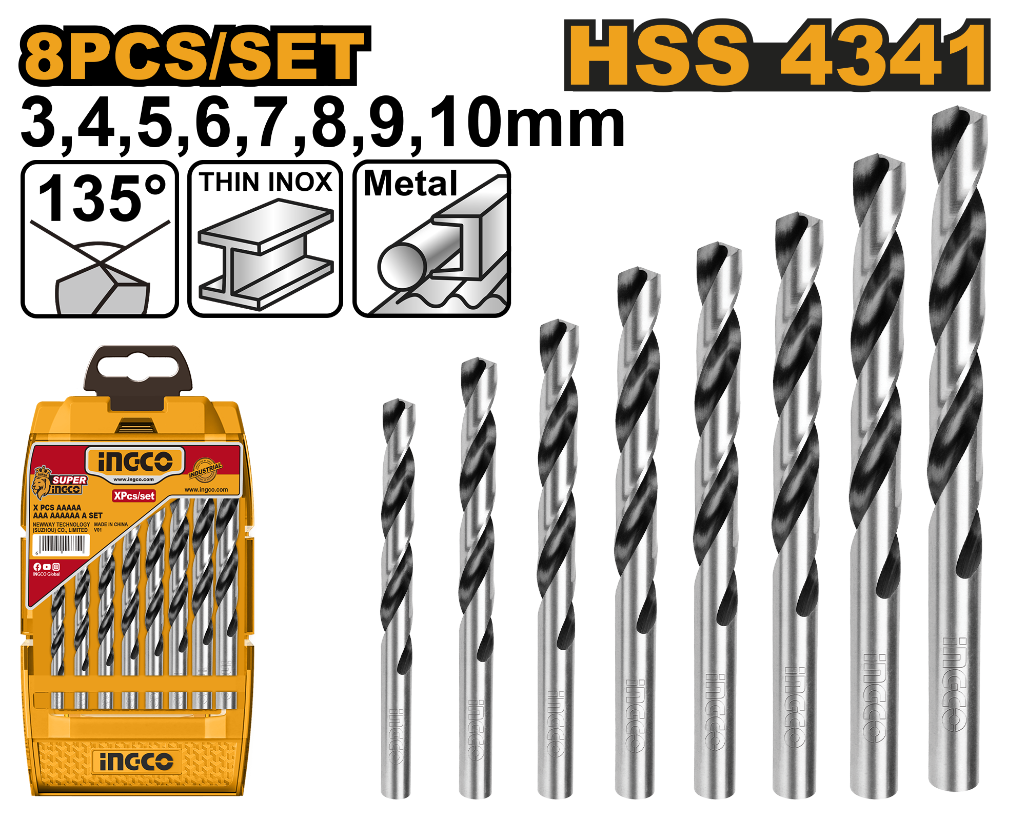 8pcs HSS 4341 twist drill bits set