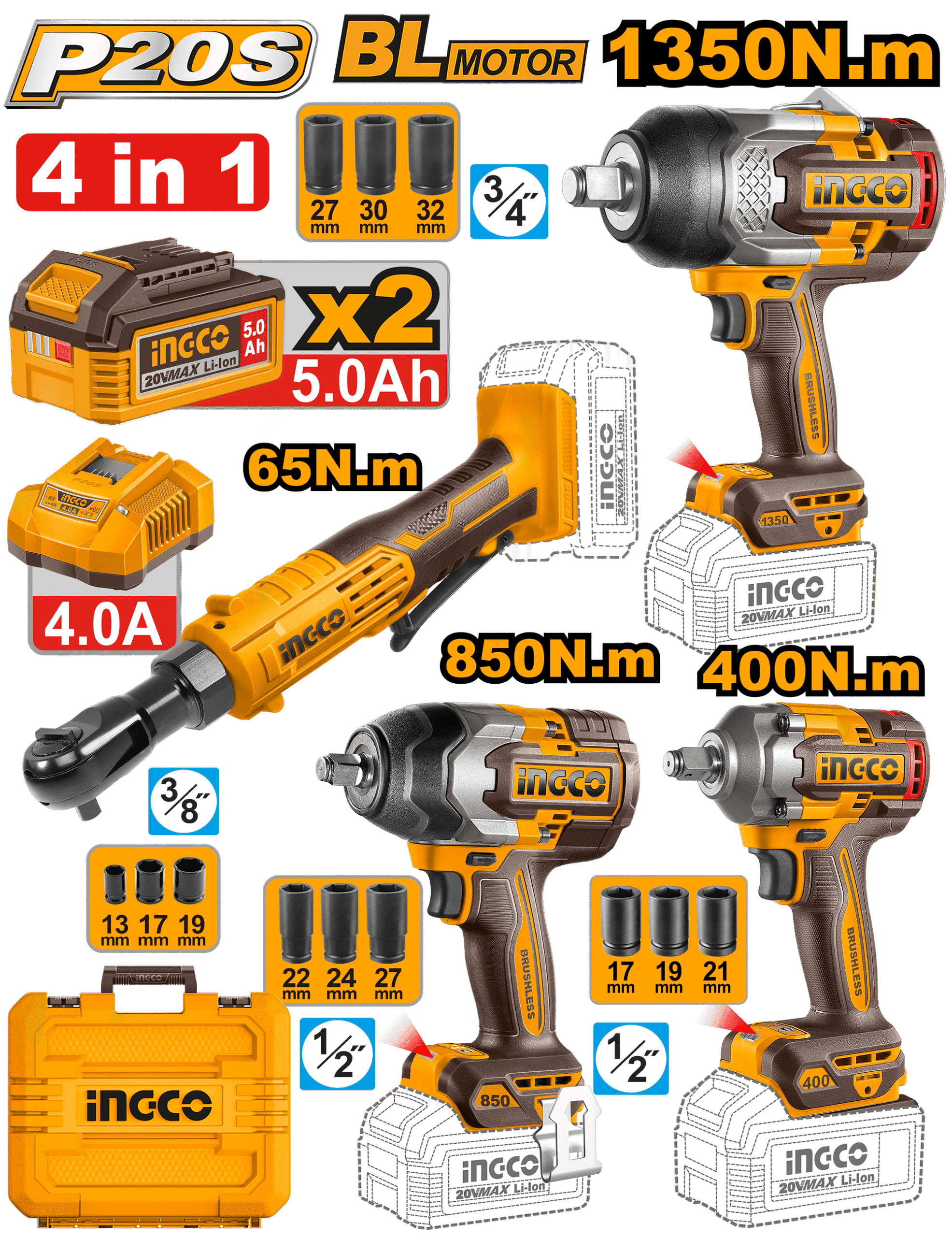 Square drive: 3/4″
