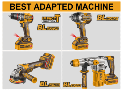 Brushless motor Voltage: 20V No-load speed: 0-1100rpm Impact rate: 0-5400bpm Impact energy: 2.0J Max.drilling capacity: Concrete: 22mm Steel: 13mm Wood:
